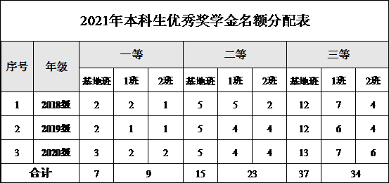 根据学校划拨的优秀学生奖学金名额,学院名额分配如下: